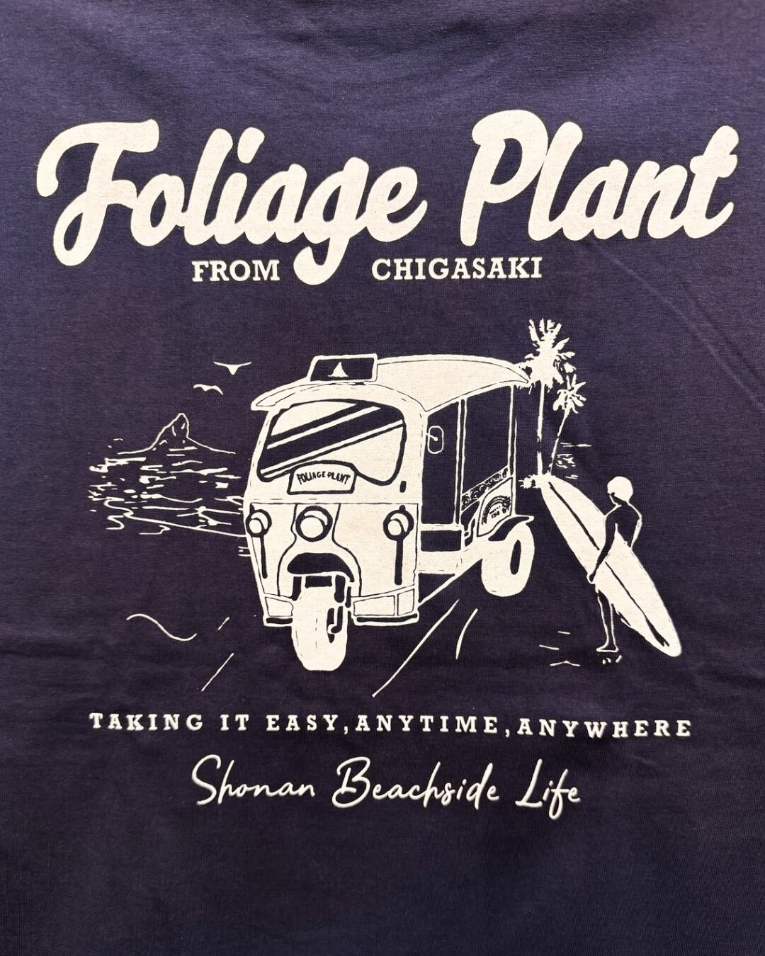 茅ヶ崎のビーチを駆け抜けるトゥクトゥクをデザインしたback print logo
