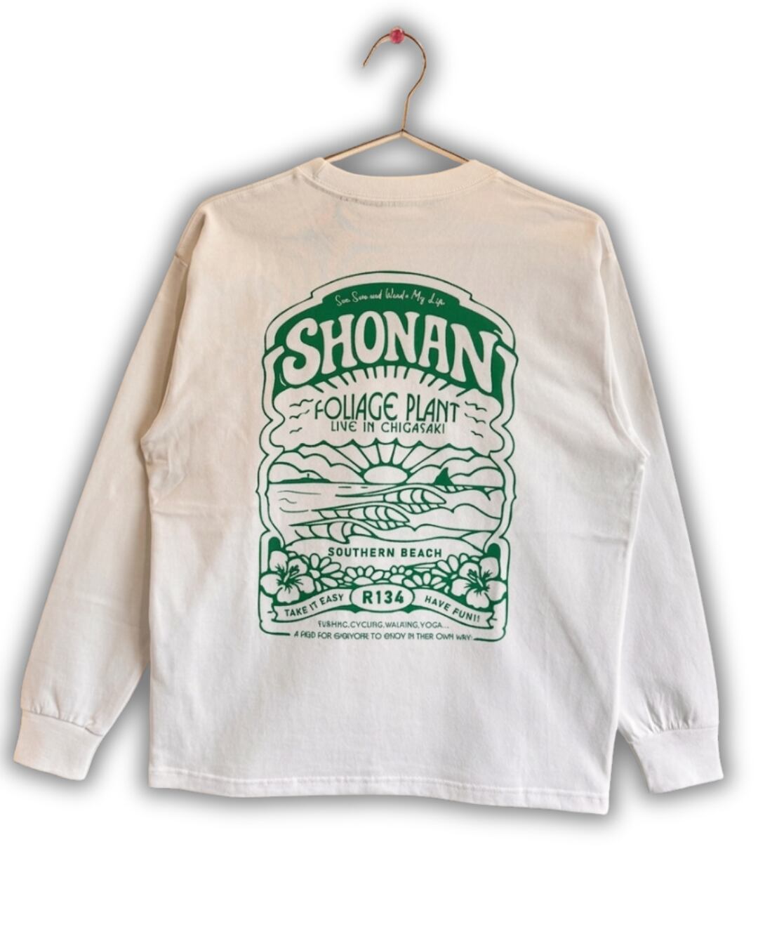 USAボディ(アメリカ製ボディ)を意識したややワイドなサイズ感。USAコットンを使用し、タフな生地感、ゆったりとしたシルエット、優れた耐久性が特徴です。アメリカで生産される綿花の特徴は、中国綿などと比べて油分が少なく、独特のシャリ感があります。こだわりのロングスリーブTシャツに、湘南の景色をレトロなタッチでパッケージしました。