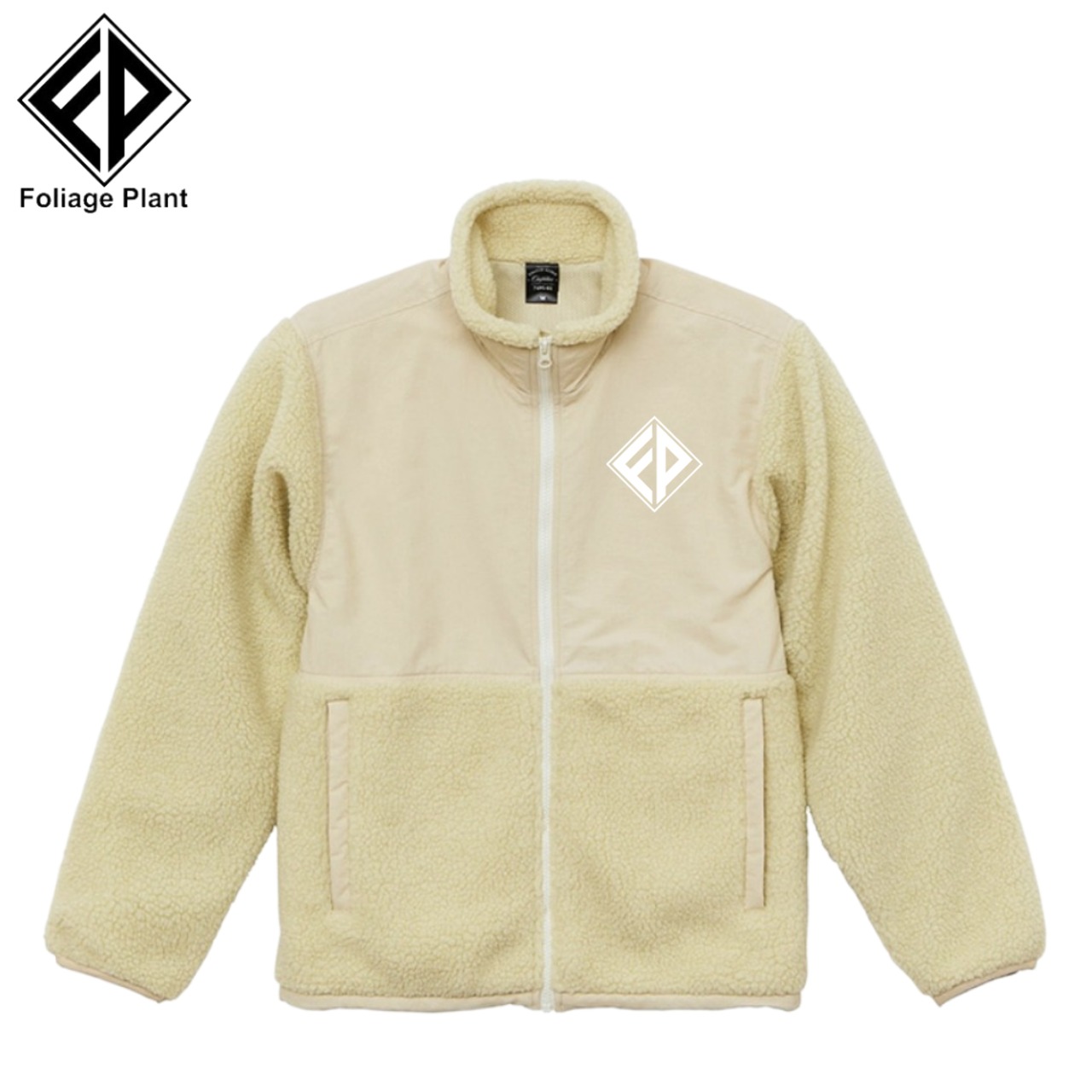 シープボア フリーススタンドジャケット(裏地付) ナチュラル
